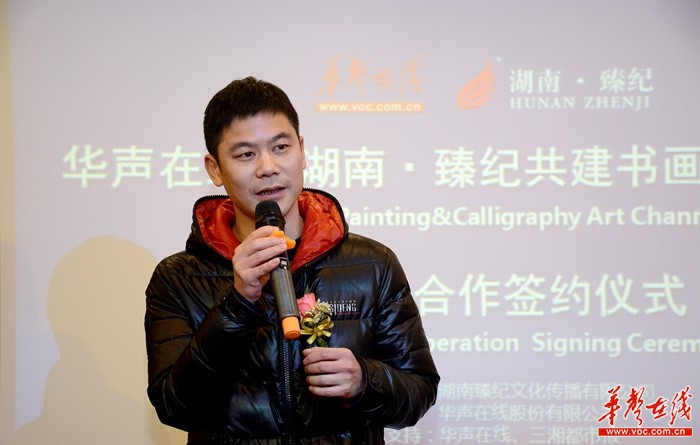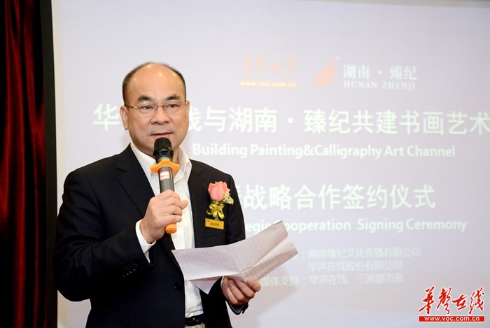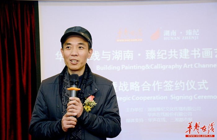1月20日上午,华声在线与湖南·臻纪共建书画艺术频道暨战略合作签约仪式,在位于湖南商会大厦的湖南臻纪公司举行。 李毅 摄