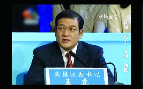 武汉市武昌区委书记王立当场被要求背诵社会主义核心价值观,在背诵前8字时,还比较流畅。