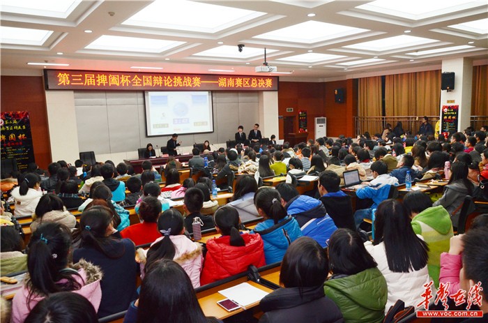 1月4日晚,第三届捭阖杯全国辩论挑战赛——湖南赛区总决赛在湖南师大化工学院学术报告厅举行,最终湖南师大战胜湖南大学夺得赛事冠军。 李毅 摄
