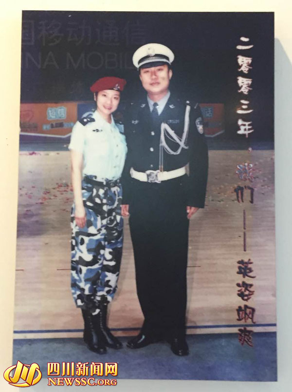 今日下午,赵潇莉的老公彭凡在家中看着照片墙怀念老婆。照片墙上挂着他俩从1998年相识到2005年结婚的照片,每一张照片都有一个故事。“这张照片是2005年在蒙顶山上的两棵连根树下照的,追了她8年,她答应嫁给我。”在结婚仪式上,彭凡给了赵潇莉一个承诺:“我要照顾你一辈子。”