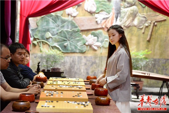 在洪江古商城青楼荷风院,“围棋西施”玲儿姑娘与5名游客进行车轮战