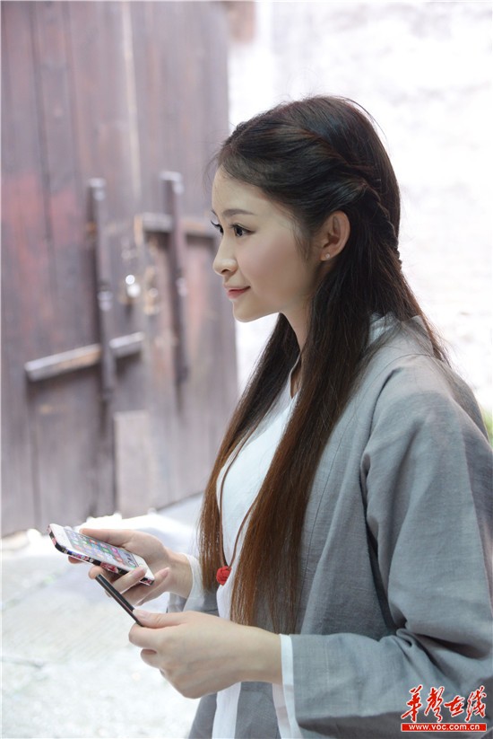 每天早上,洪江古商城近百位演员换了古装后都会化上淡妆,玲儿姑娘说:“这是对游客的尊敬。”