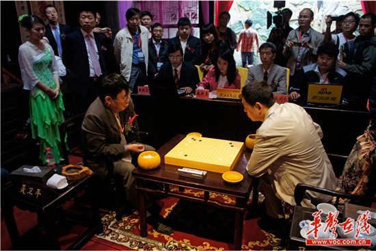 资料图片:2011年第五届世界围棋巅峰对决在洪江古商城举办,当时中国围棋界“生死宿敌”聂卫平和马晓春,在古城内极具风情的清代青楼荷风院面对面博弈。