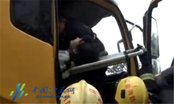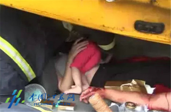 中国江苏网6月18日讯 17日中午11时许,在京沪高速扬州江都段突发险情:路面上5辆汽车发生追尾碰撞,当中,一辆厢式货车撞击最为严重,一家三口被困,其中还有个3岁大的女童。