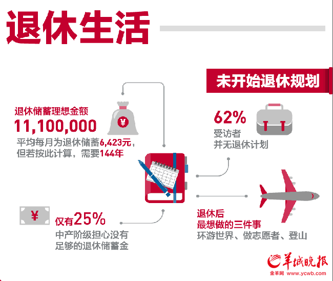从调查数据看来,中国内地的中产阶级认为,要实现长期经济保障,存款需要达到人民币770万元,而平均资产达到人民币1,240万元才能算富裕。不过呢,62%的人却没有退休计划,这一比率远高于受访北亚地区市场的平均值45%。他们一方面认为约需1,110万人民币才可安享退休生活,而另一方面他们平均每月为退休储蓄仅6,423元人民币,除去其他投资收益及货币通胀等因素,若要达成1,110万元的存款需不间断积累超过100年。
