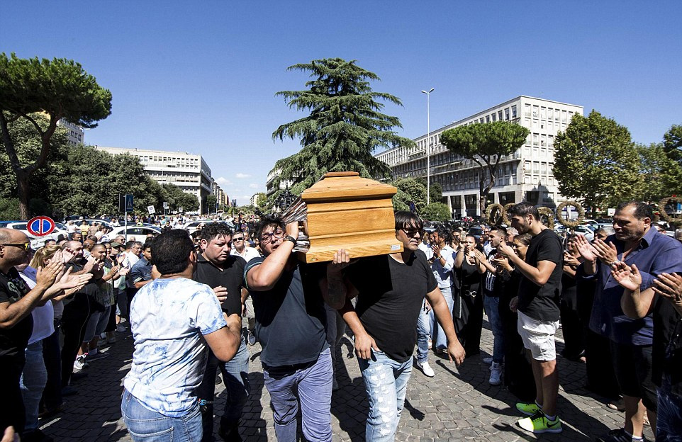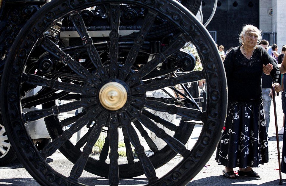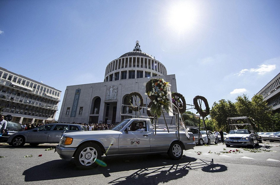 据悉,葬礼在罗马市郊的一所教堂举行,葬礼规模十分奢华,教堂外不仅停有六架黑金色古董马车,还有乐队在演奏电影《教父》中的曲调。此外,当棺材被抬进教堂时,空中还有直升飞机抛撒花瓣。哀悼者泣不成声,纷纷向维托里奥做最后的道别。葬礼现场还有标语称:“你征服了罗马,现在你将征服天堂。”