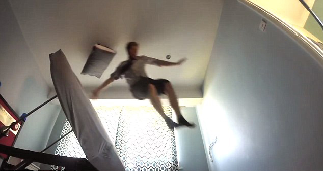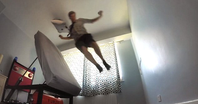 这名叫做科林•弗兹(Colin Furze)的男子在自家车库里制造了这款高压喷射床,床架以铝材制成,使得床通电后更为平稳,也便于将人弹到空中。床尾有两根管子,上面安装了电磁阀和一个空气压缩机。床尾还挂着裤子,这样当床翘起时弗兹就能完成穿裤过程。此外,弗兹还加了两个活塞以便用开关调整速度。在车库里完成床的组装后,为安全起见,弗兹选择在一个充气城堡前进行试验。