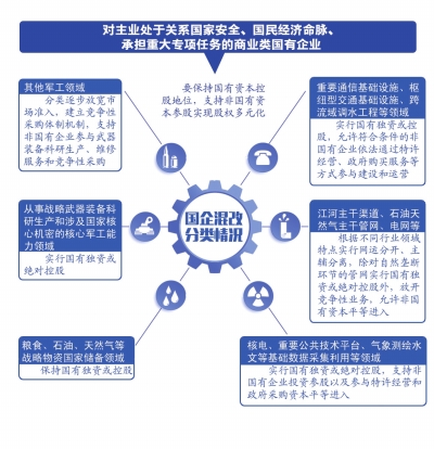 在《深化国企改革的指导意见》中,国企被粗略分为公益类和商业类。在昨天发布的《意见》中,对实行混合所有制改革的国企的分类情况进行了进一步说明。