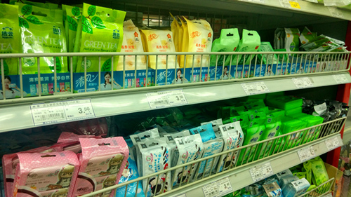 超市中琳琅满目的湿巾产品