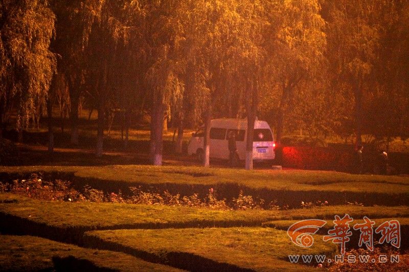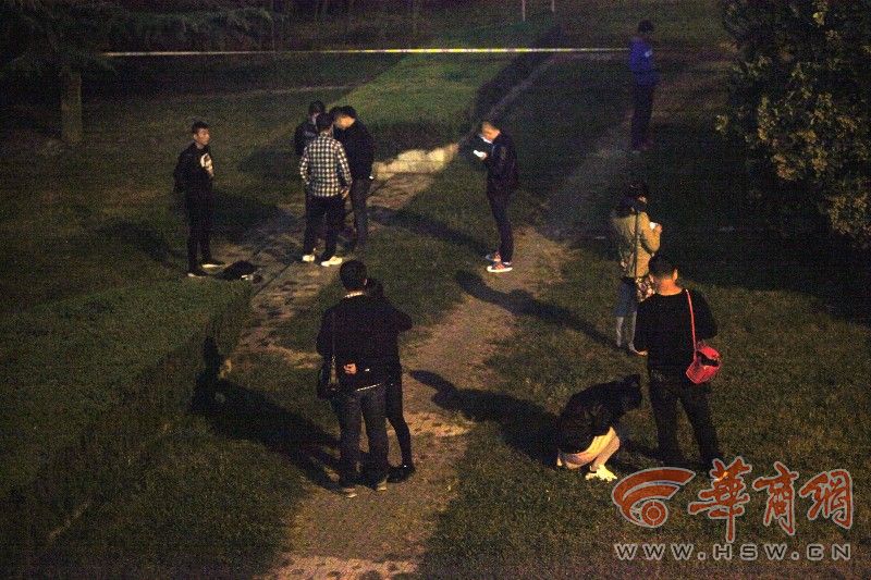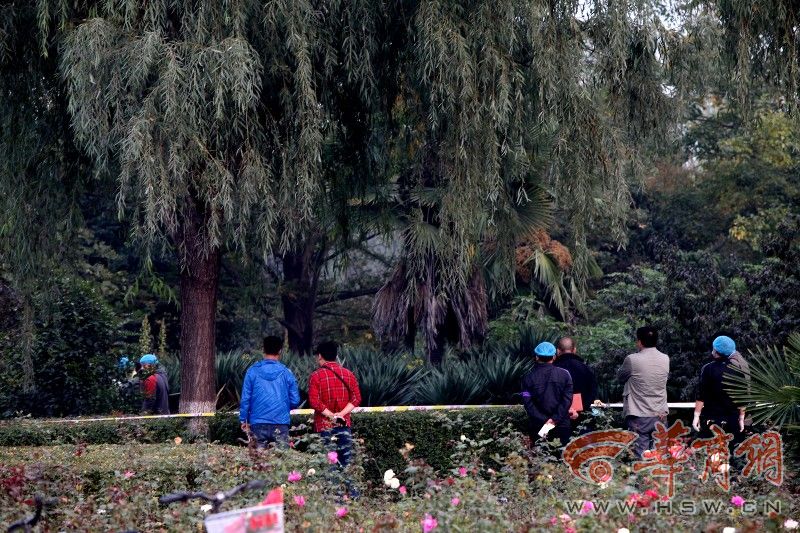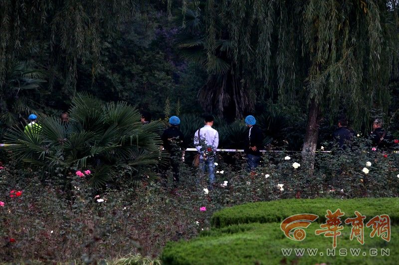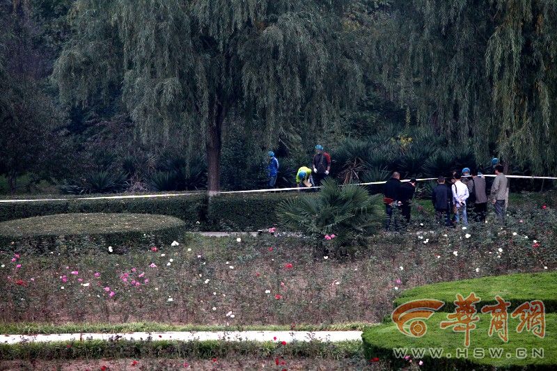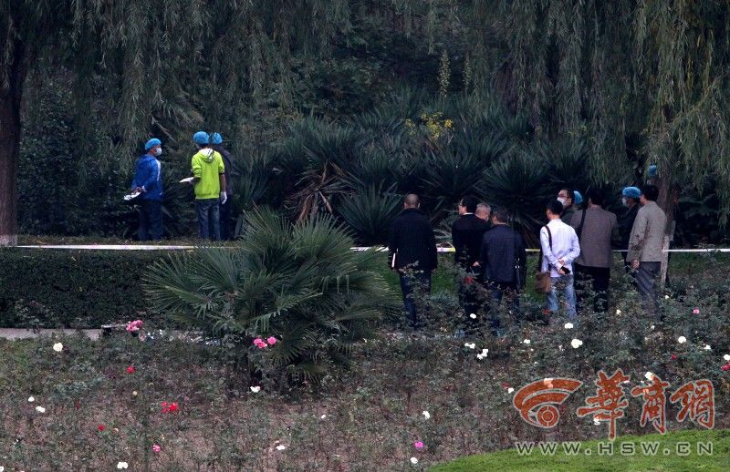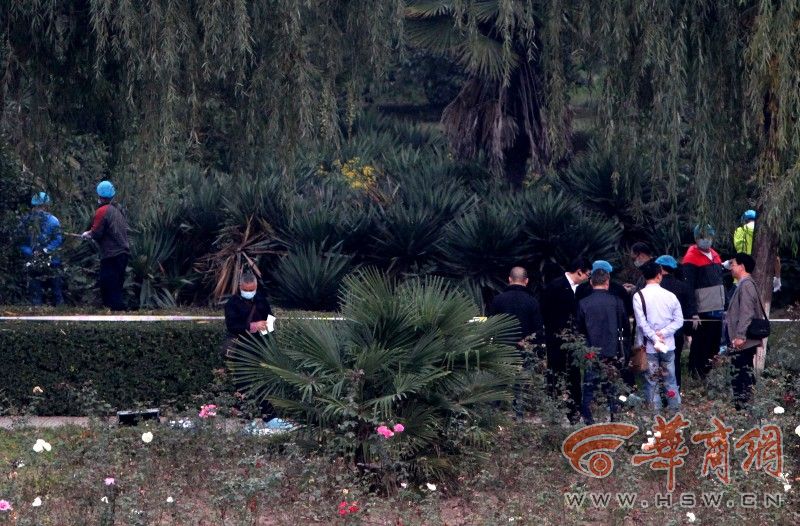 昨日下午6时许,华商报记者在胜利大桥下看到,警方已将现场封锁,正在勘查。华商报记者在远处观察,发现尸体的灌木丛旁就是一条公园道路,而二三十米远处就是胜利大桥,同时在旁边十多米处还有一根十多米高的大灯。