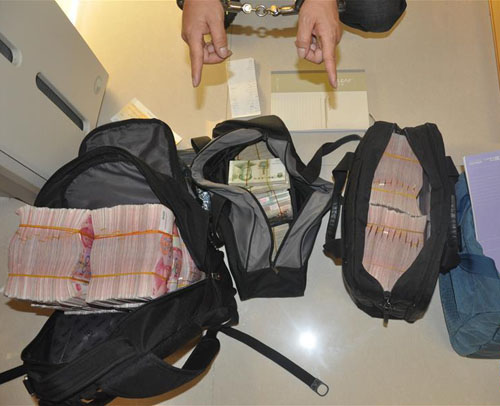 这是警方在地下钱庄缴获的赃款(2015年4月1日摄)。1月11日,广东省公安厅披露,2015年查处地下钱庄案件83宗,已破案件的涉案金额超过2000亿元。