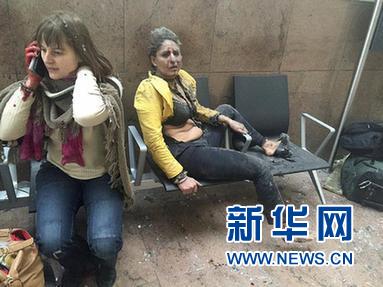 3月22日,比利时首都布鲁塞尔机场爆炸现场拍摄的伤员。新华社发
