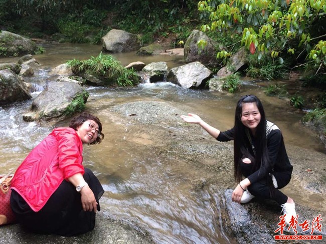 几位女孩执意解开鞋带褪去袜子,欢快地跳上一块光滑湿溜的卵石,用脚掌轻触流水,感受溪水的澄澈与清凉。潺潺溪水声,银铃般笑声,如珍珠撒落玉盘。这时,同行的摄影老师不断地按下快门,将一张张笑脸定格在相机里。