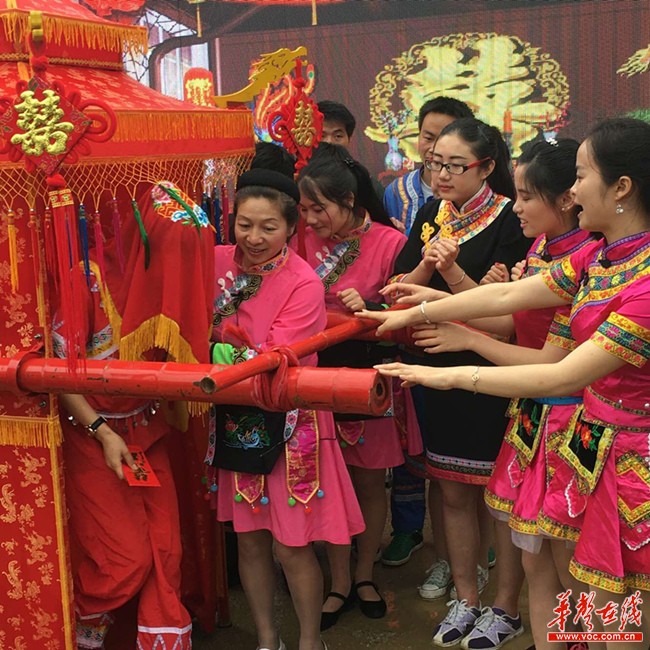 一下车,山歌对唱就穿透山谷,敲打着我们的耳鼓。跳起竹杠舞,尝过绿荷包饭、芋饺,饮过米酒,我们刚领略到畬乡人的深情厚意,那边一场畲族婚礼又开始热热闹闹地举行。讨利市、哭嫁、抬花轿……别有一番情趣! 在畲族中,盘、蓝、雷、钟四大姓子孙繁衍生息自成一族。载入族谱,绘成连环画像的是“祖图”,上绣图腾和姓氏,在节日里悬挂出来,祀奉甚虔。每个家族有根祖杖,祖杖雕刻作龙头,这也是畲族图腾的主要标志。节日里,附近几十里同宗祠的畲族云集歌场,自晨至暮,对歌盘歌,内容为歌颂盘瓠,怀念始祖。整个畲山,沉浸在一片歌的海洋之中。