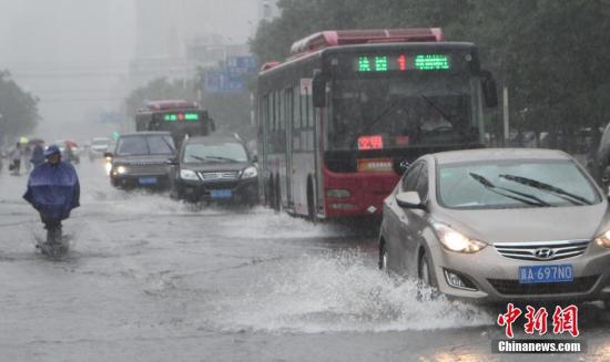 7月20日,河北省多地持续普降大雨,车辆、行人水中前行。石家庄市气象局继续发布暴雨红色预警信号和雷电红色预警信号。受雨天影响,目前市区及县区各地积水严重,多地断交,影响民众出行。图为市民雨水中出行。韩冰 摄