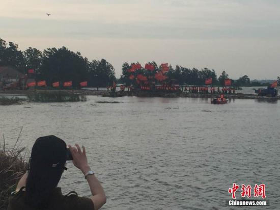 中新社湖北黄梅7月20日电 题:湖北黄梅溃口成功封堵 湍急水流复归平静