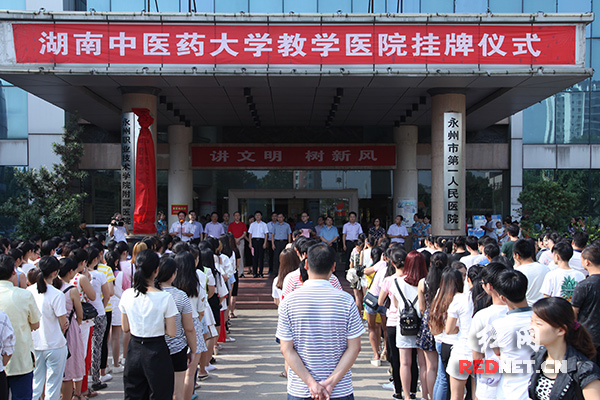 经湖南中医药大学批准,永州市第一人民医院正式成为湖南中医药大学教学医院,医院杨铭、蒋小剑等多名教授成为湖南中医药大学的硕士生导师,挂牌牌仪式于9月13日举行。