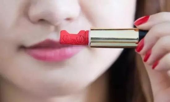一堆猫咪口红里,还有一只是雕刻成了电商平台天猫的logo,显得特别惹眼。