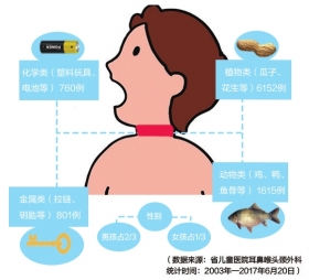 误入儿童呼吸道异物数据 数据来源:省儿童医院时间:2003年-2017年6月20日