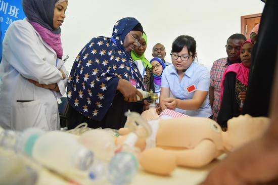项目执行组现场负责人、湖南省儿童医院副院长朱丽辉介绍,此次海外培训班是通过前期实地调研,有针对性地为桑给巴尔当地医院设计制定了标准化的医院管理策略,因地制宜为桑给巴尔25名医务工作者开展为期10天的理论授课、技能培训、追踪回访、远程会诊和临床指导等活动,讲授涵盖中国国情及文化简史、医疗质量管理、护理质量管理、医院精细化管理、基础和高级生命支持、新生儿和早产儿管理、儿童腹泻管理、标准化儿科与新生儿病房的建立、创伤急救管理、院感控制和健康教育等12项内容,技能训练涉及新生儿、儿童和成人的心肺复苏及气管插管等基础和高级生命支持等。朱丽辉指出,海外培训班是以“授人以渔”的形式,激活当地医院自身“造血”功能,帮助他们培训一批现代医院管理骨干,科学化、体系化地提高其业务环节的流程控制、精细化管理的执行力度,最终实现提升临床诊疗水平和综合服务能力。