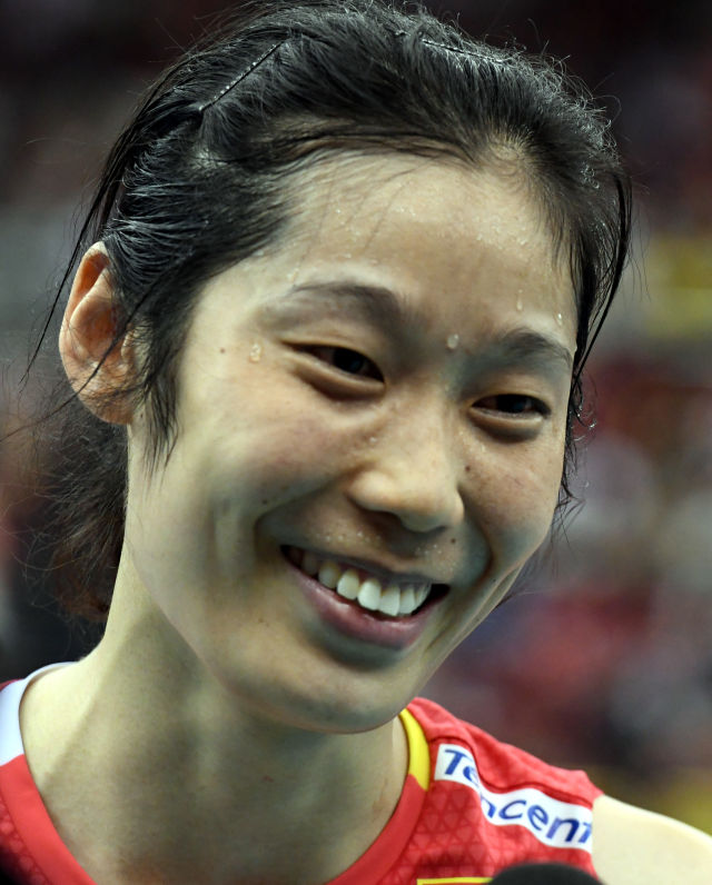 9月10日,中国队球员朱婷在赛后接受记者采访。