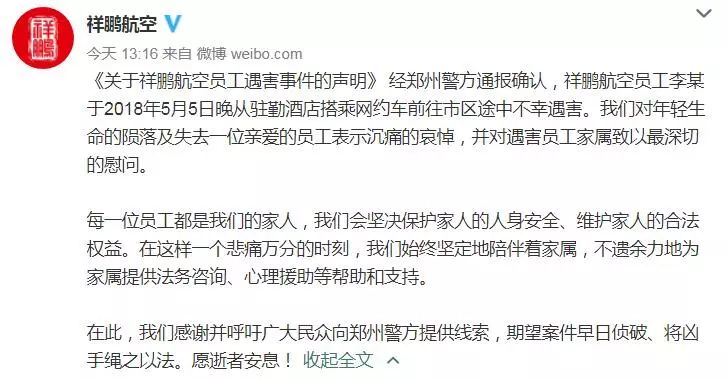 对于郑州顺风车乘客李女士遇害一事,感到万分悲痛和愧疚,在这样的悲剧面前,任何言语都无法表达滴滴沉痛的自责。