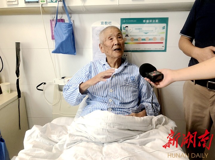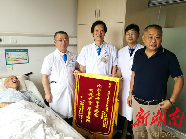 来自湘西永顺的胡爷爷已经90岁了,在一次健康体检中,被当地医院诊断为“腹主动脉瘤并双髂动脉瘤”,并伴有慢性阻塞性肺疾病及多发性腔隙性脑梗、肝囊肿、左肾囊肿等多种疾病。因其年龄高、手术风险高,手术难度大,家属和当地医院一筹莫展。“平时我没有太大的感觉,只感觉肚子里好像在跳动,但医生说我这个瘤子已经非常危险了,必须赶紧转到省级医院去做手术。”胡爷爷回忆起这个过程心惊胆战。