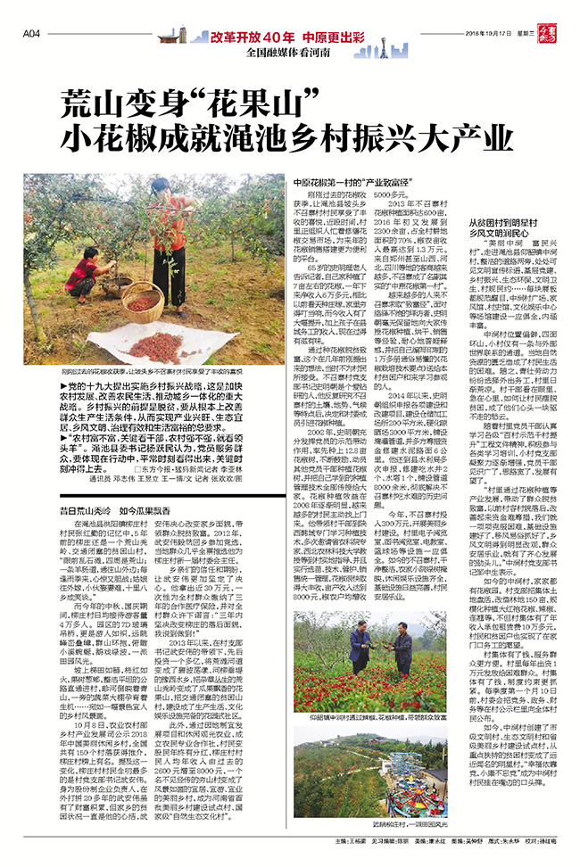 (仰韶镇中涧村村里通过辣椒、花椒种植等产业发展,带动了群众脱贫致富)