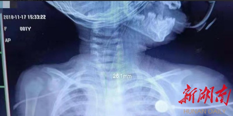 据介绍,气管食管瘘属于食管闭锁畸形的第五型,气管食管瘘系由于先天性胚胎发育异常形成气管与食管间由瘘道相连通的一种疾病。新生儿可出现进食呛咳和反流。而患儿曹某为V型:占0.5%~6.5%,食管通畅,但有斜行瘘管向前上方与气管相通,又称"H"型。