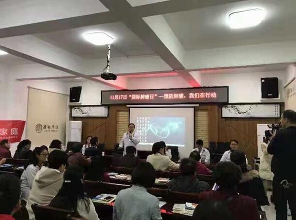 邓桂明)2018年11月17日是第18个“国际肺癌日”。11月16日,中南大学湘雅二医院呼吸与危重症医学科,联合长沙市芙蓉区文艺路街道办事处及文艺路社区卫生服务中心,在湖南省政府机关二院联合7大社区(文艺新村社区、识字岭社区、韭菜园社区、东广济桥社区、湘府社区、南元宫社区、乔庄社区)举办了一场“预防肺癌,我们在行动”的国际肺癌日大型科普讲座和义诊活动。