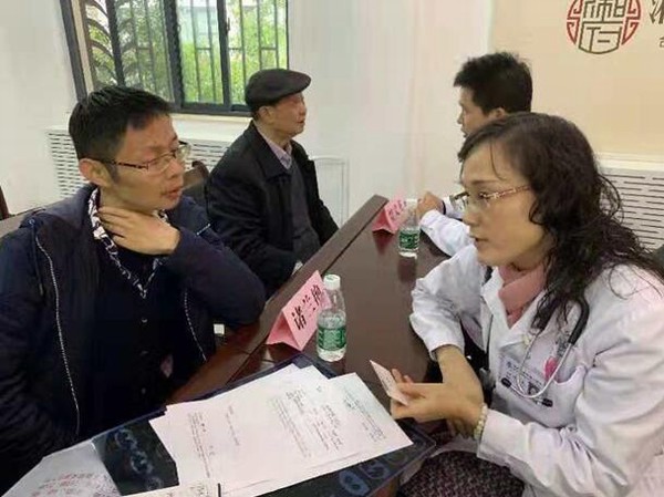湘雅二医院呼吸与危重症医学科周锐教授给社区群众进行备受关注的肺结节的科普知识讲座,现场座无虚席,大家认真听课,积极发言,周锐教授一一回答了群众疑难问题。护士志愿者们给听众们发放了宣传资料,包括肺癌患者健康教育手册、肺癌防治科普手册、慢性阻塞性肺疾病健康教育手册、哮喘患者教育手册等,并向就诊者和咨询者进行健康宣教,免费给群众测量血压。医院教授团队以授课教学形式带领社区医生给前来的群众义诊,为群众答疑解惑,提供肺癌相关咨询。
