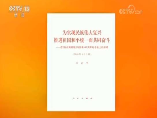 央视网消息(新闻联播):中共中央总书记、国家主席、中央军委主席习近平在《告台湾同胞书》发表40周年纪念会上的讲话《为实现民族伟大复兴推进祖国和平统一而共同奋斗》单行本,已由人民出版社出版,即日起在全国新华书店发行。