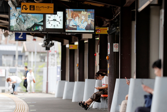 7月19日,日本京都,“京都动画”的广告牌在该工作室附近的火车站展示。视觉中国供图