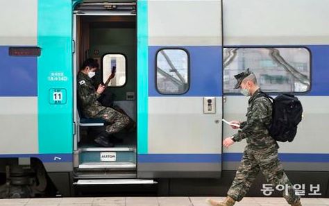▲疫情加重,韩国军人戴口罩出行(《东亚日报》)