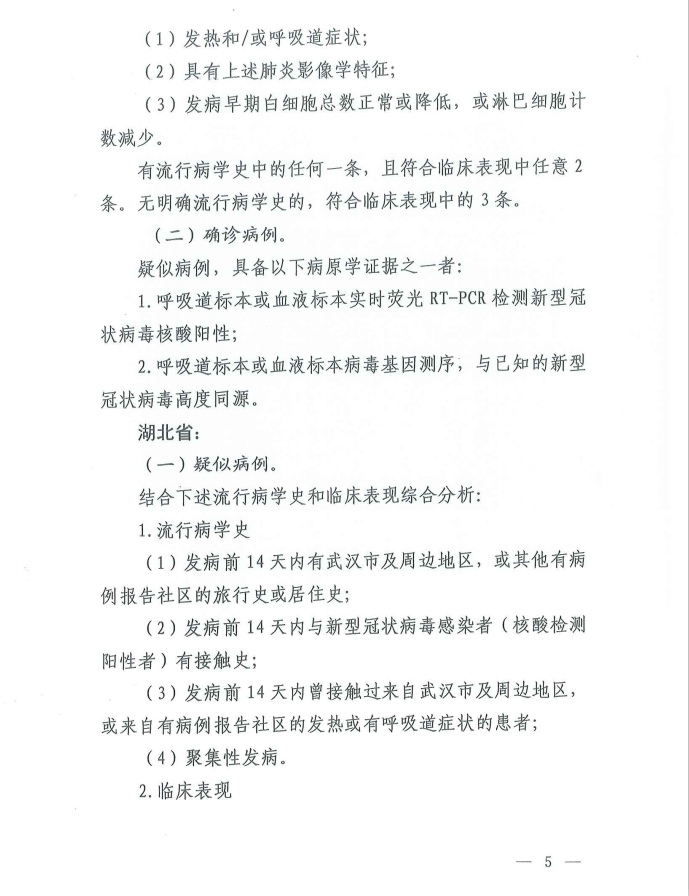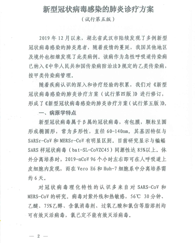 (原标题为《 关于印发新型冠状病毒感染的肺炎诊疗方案(试行第五版)的通知》)