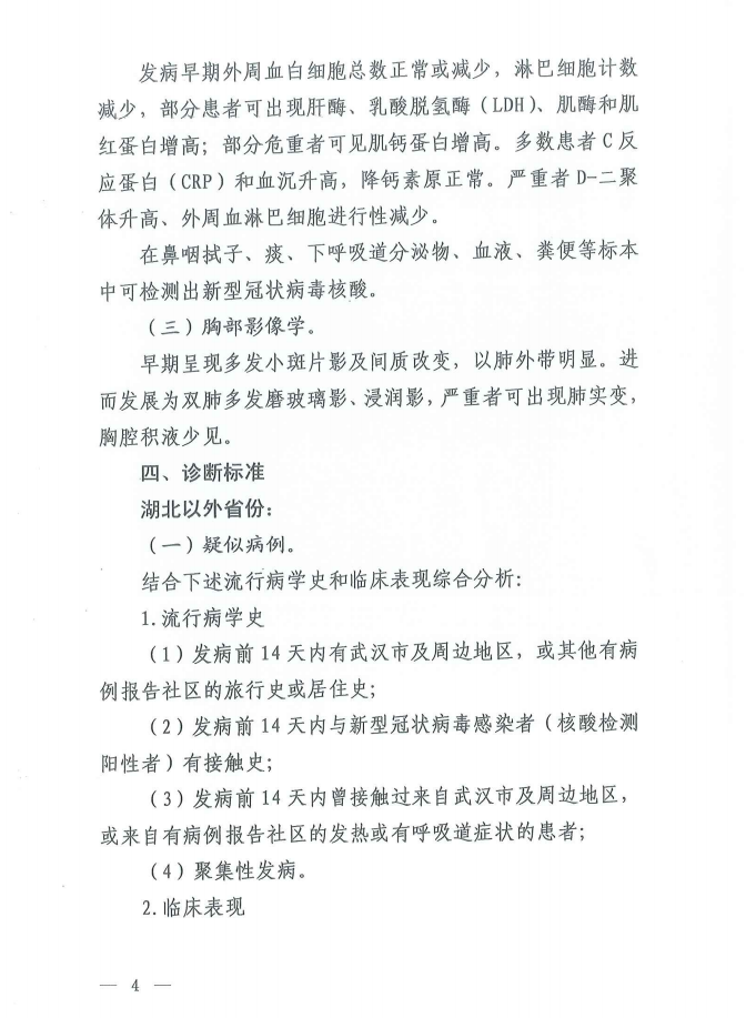 为进一步做好新型冠状病毒感染的肺炎病例诊断和医疗救治工作,我们组织专家在对前期医疗救治工作进行分析、研判、总结的基础上,对诊疗方案进行修订,形成了《新型冠状病毒感染的肺炎诊疗方案(试行第五版)》,现印发给你们,请参照执行。各有关医疗机构要在医疗救治工作中积极发挥中医药作用,加强中西医结合,建立中西医联合会诊制度,促进医疗救治取得良好效果。