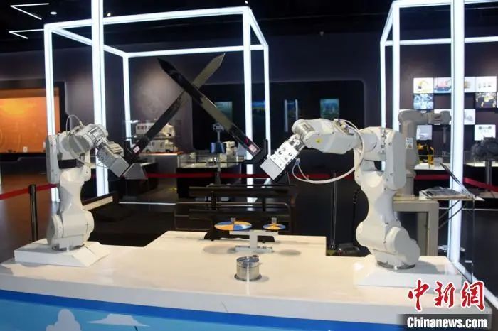 资料图:安徽创新馆内,先进机器人进行舞剑演示。孙自法 摄