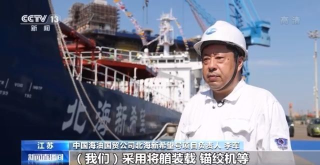 中国海油国贸公司北海新希望号项目负责人 李军:“北海新希望”号的设计不但能满足“深海一号”能源站凝析油外输的需求,还具有安全高效、技术先进的特点,能在复杂的海况天气环境下,快速响应生产作业的调度要求。