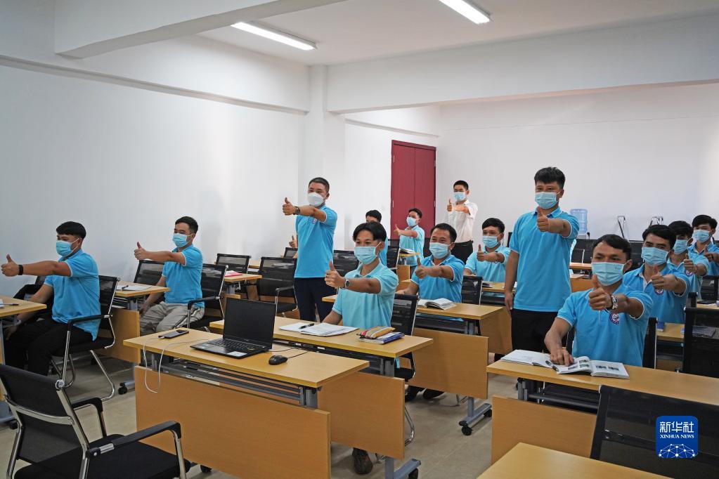 2021年12月12日,老挝学员在中老铁路万象南站参加课堂教学。