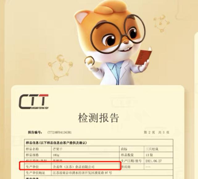 在电商平台,三只松鼠旗舰店在售的某款芒果干即为含羞草 ( 江苏 ) 食品有限公司生产。