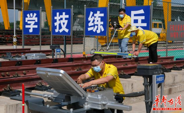 在时速350公里的京广高铁列车上,一杯茶水放在桌上,水面只会微微晃动。这样的平稳度得益于铁路人对于钢轨的精调和检修。走进石家庄高铁综合维修保养点,工务段和电务段的工作人员正在实训基地,使用检测车等工具练习精调钢轨。北京高铁工务段石家庄车间技术指导尹德中说,钢轨的轨距、水平、高低都直接影响旅客乘车的舒适度,精度要达到毫米级。