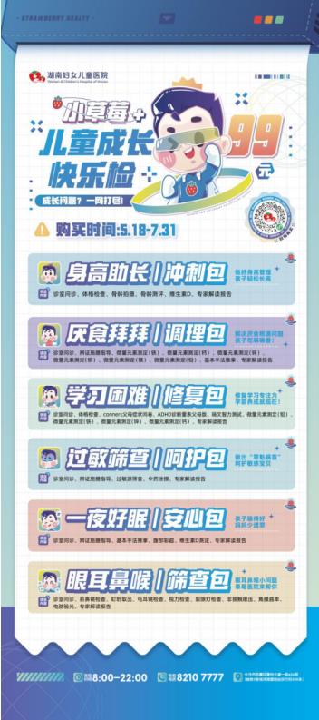 身高发育、饮食营养、学习情况、疾病筛查、睡眠质量、五官健康……直击儿童成长6大关键版块,湖南妇女儿童医院推出6大“儿童成长快乐检”套餐,包含“身高助长·冲刺包”“厌食拜拜·调理包”“学习困难·修复包”“过敏筛查·呵护包”“一夜好眠·安心包”“眼耳鼻喉·筛查包”,一站式解决青少年发育困惑,助力成长快乐。