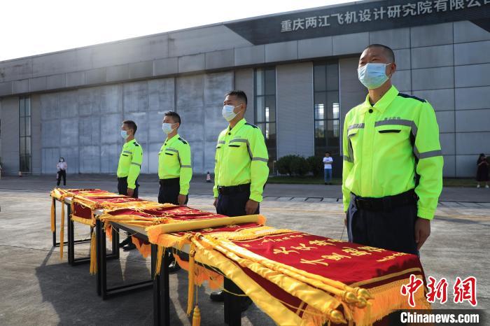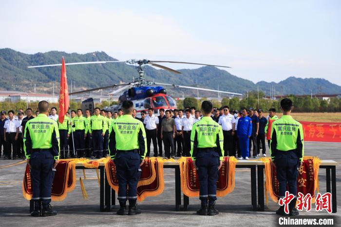 中新网重庆8月28日电 (梁钦卿)重庆市森林草原防灭火指挥部28日举行仪式,慰问所有参与灭火的航空应急救援人员,并向这些“灭火雄鹰”送上锦旗。
