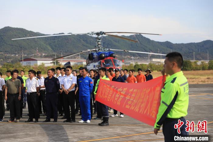 图为重庆市向参与灭火的航空应急救援人员送上锦旗。 梁钦卿 摄
