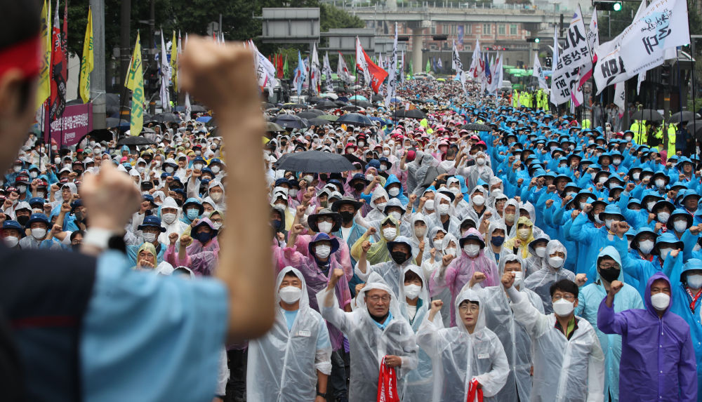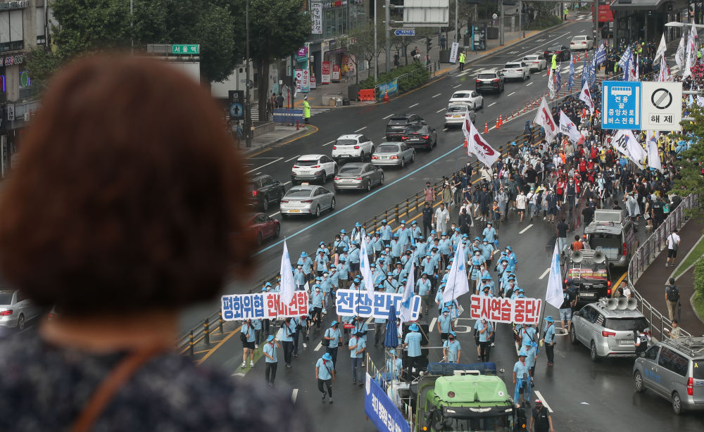 据韩国《朝鲜日报》8月16日报道,韩国全国民主劳动组合总联盟下属组织“统一先锋队”日前在韩国各地驻韩美军基地接连举行集会,要求驻韩美军撤离韩国。