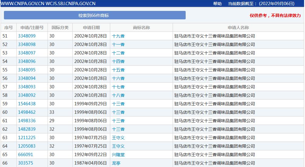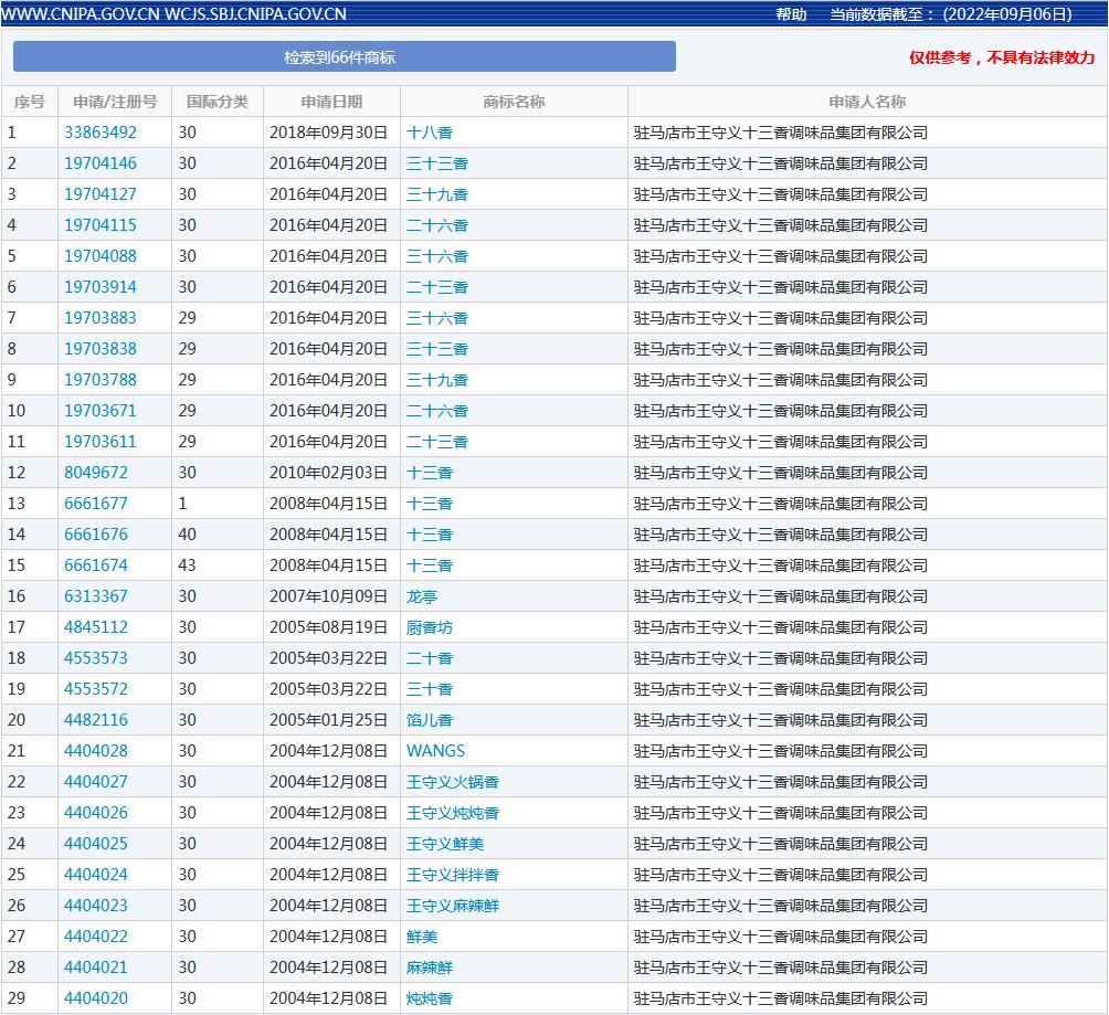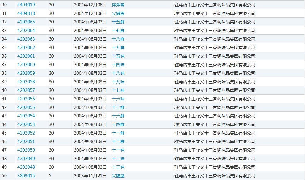 中新网9月8日电 “王守义已注册十四香商标”的消息8日登上微博热搜,据国家知识产权局商标局网站查询信息,驻马店市王守义十三香调味品集团有限公司还申请了“十一香”、“十五香”、“二十香”以及“三十九香”等商标。(中新财经)