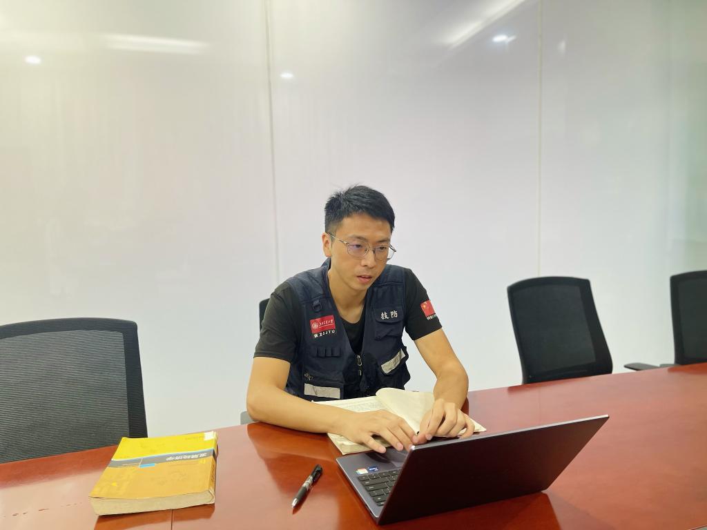 ↑9月5日,蒋家杰在上海交大保卫处工作之余学习。受访者供图