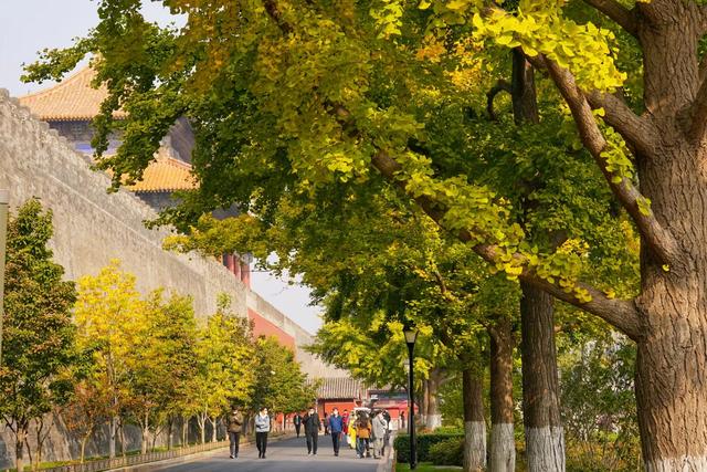 10月21日,故宫筒子河畔,秋色浓郁,金黄色的银杏叶携着各色彩叶映衬着宫墙琉璃瓦,沿着河岸漫步,古都的秋韵尽收眼底。