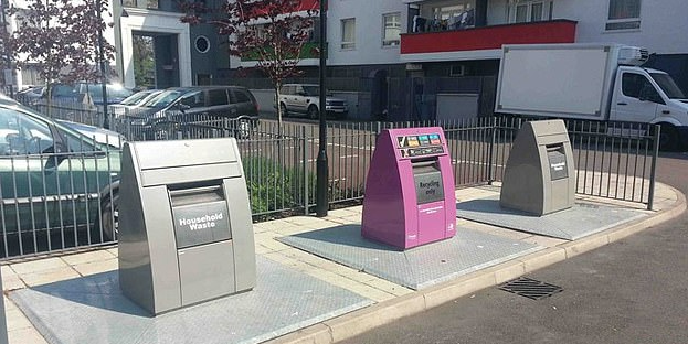 (利物浦市议会安装的垃圾箱,可在地下容纳多达5000升生活垃圾)