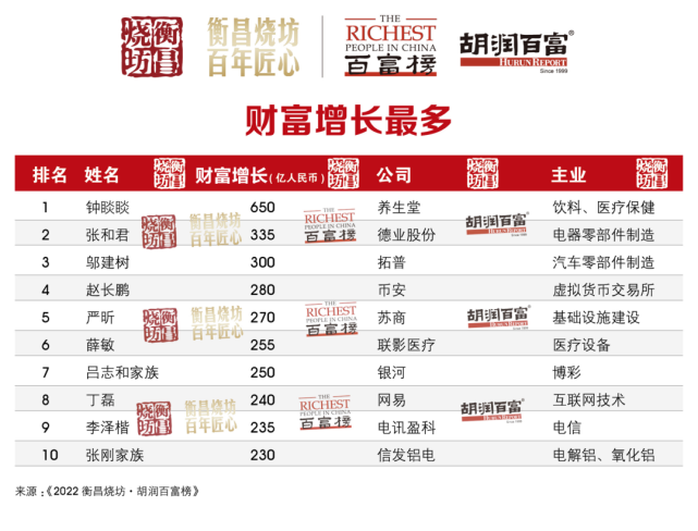 据了解,今年是胡润研究院自1999年以来连续第24次发布“胡润百富榜”。上榜企业家财富计算的截止日期为2022年9月15日。